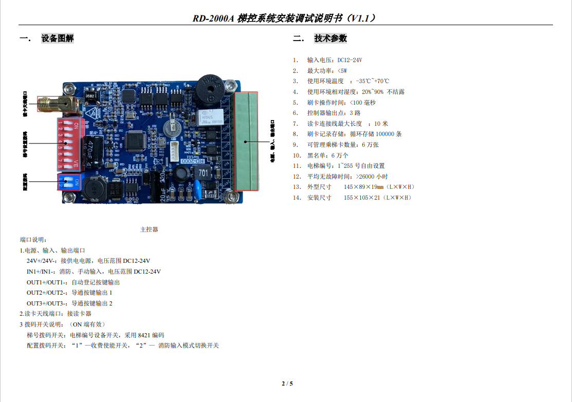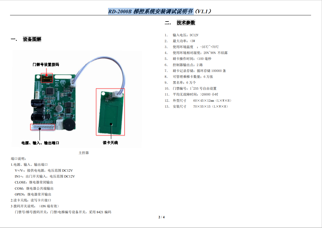 RD-2000A 梯控系統(tǒng)安裝調(diào)試說(shuō)明書(shū)(V1.1)